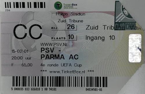 Biglietto Secondo Turno Coppa Uefa 2001/02 Utrecht-Parma.